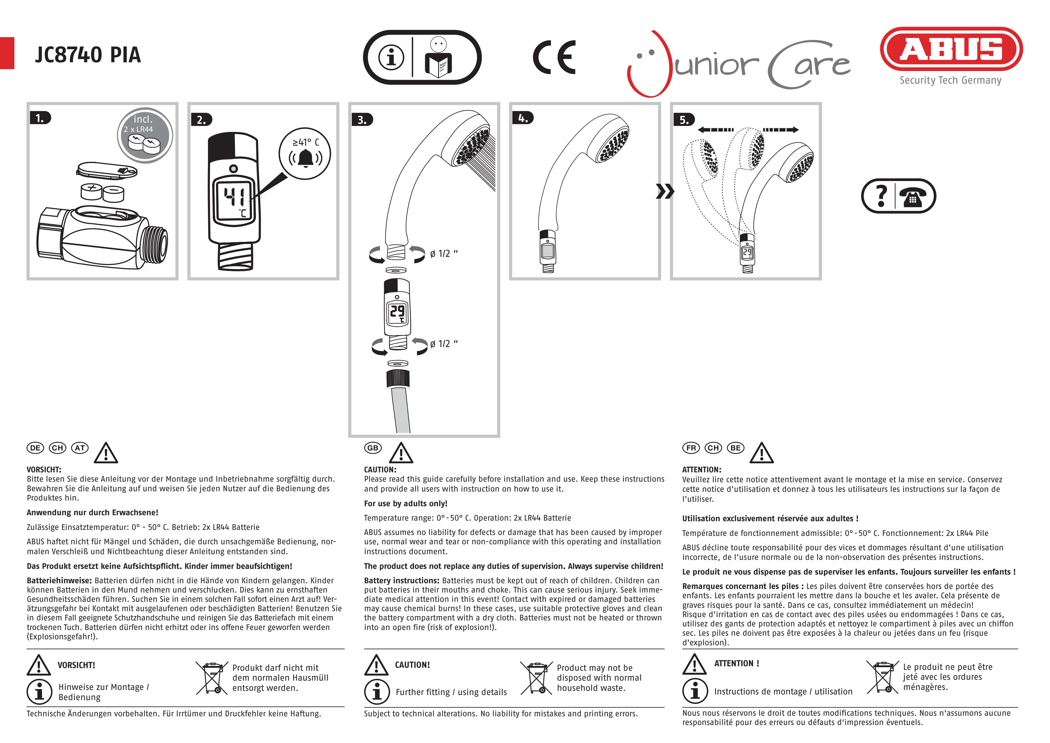 - Lieferumfang: 1x Duschthermometer; 2x LR44-Batterie; 1x Anleitung