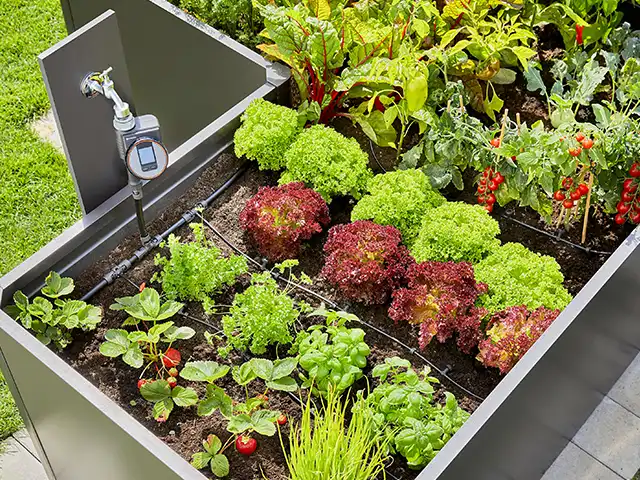 - Ein Bewässerungssystem im Garten sorgt dafür, dass Ihre Pflanzen jederzeit ausreichend Wasser bekommen. Für Balkon und Terrasse gibt es Blumentöpfe mit eingebautem Bewässerungssystem.