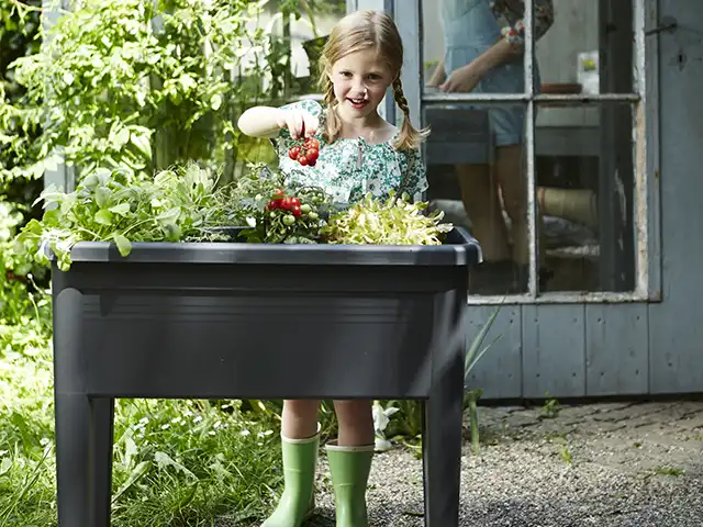 Blumentopf verschönert Ihren Balkon. Ein kleines HELLWEG Hochbeet findet