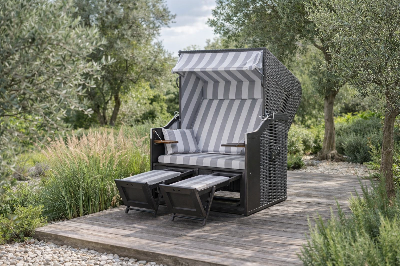 Ob gemütliche Lounge, gesellige Grillabende oder entspannte Stunden im Strandkorb – Ihr neues Outdoor-Wohnzimmer wartet bereits.